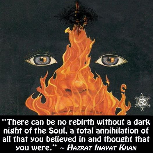 ‘Paradoxically, the dark night of the soul is often a sign of significant spiritual progress for it is not really the soul (higher Self) but the ego that is in the dark. Some comfort can be obtained by recalling the spiritual dictum that one can only go as high as they have been low, or that Jesus Christ sweat blood in Gethsemane, or that the Buddha reported that he felt as though his bones were being broken and he was being attacked by demons.